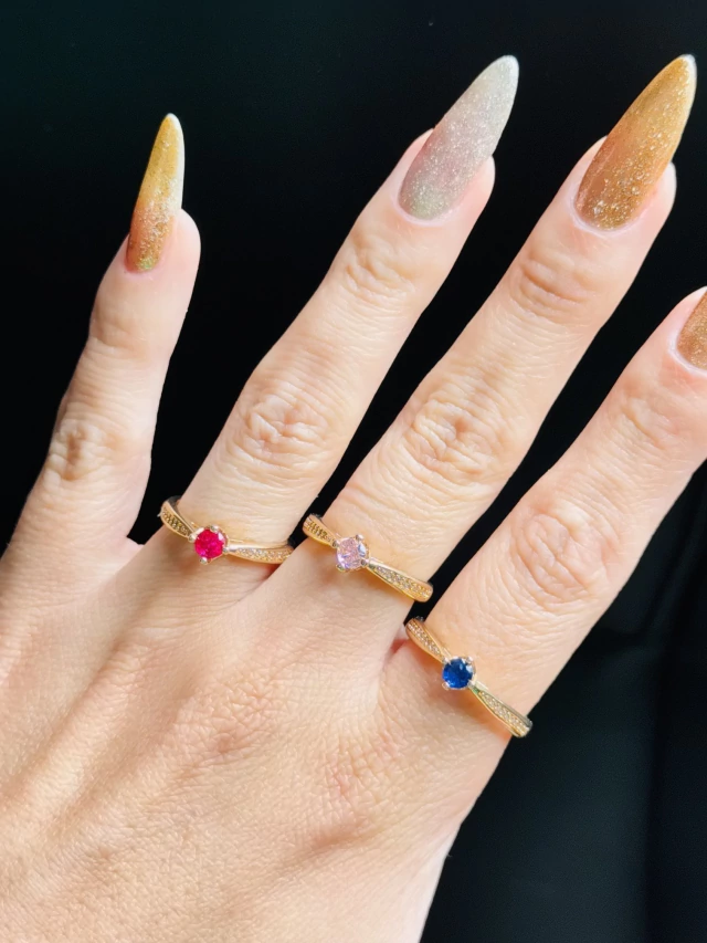Anel Solitário Cravejado Zircônia Pedra Colorida