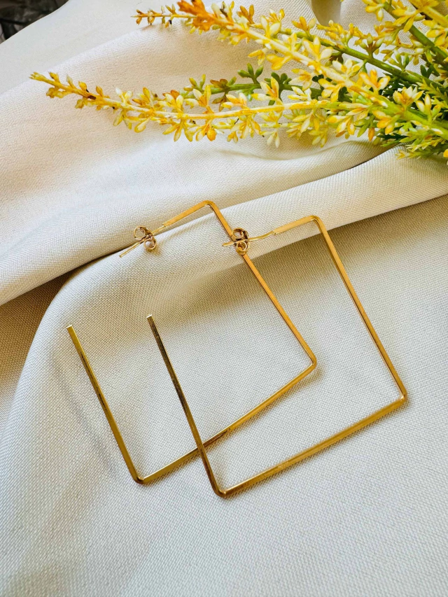 Argola Quadrada Aberta Folheado a Ouro 18K
