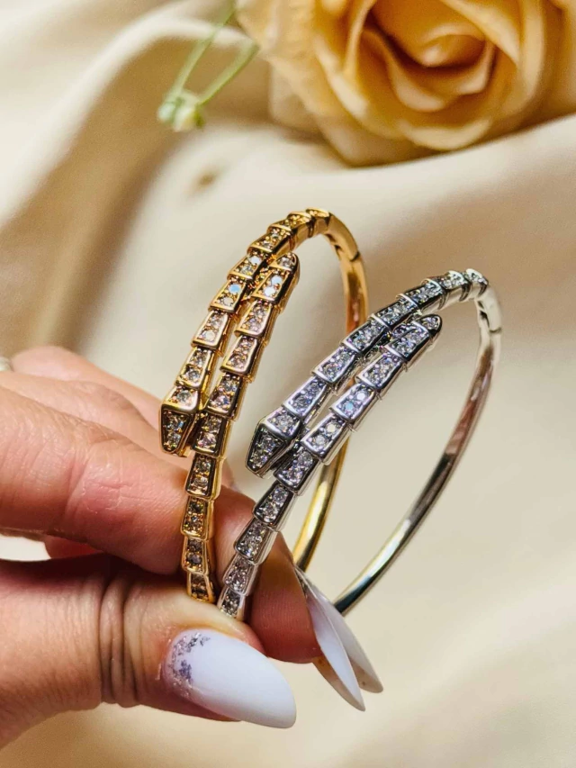 Bracelete Cobra Cravejado Folheado a Ouro 18k com 3 milésimos
