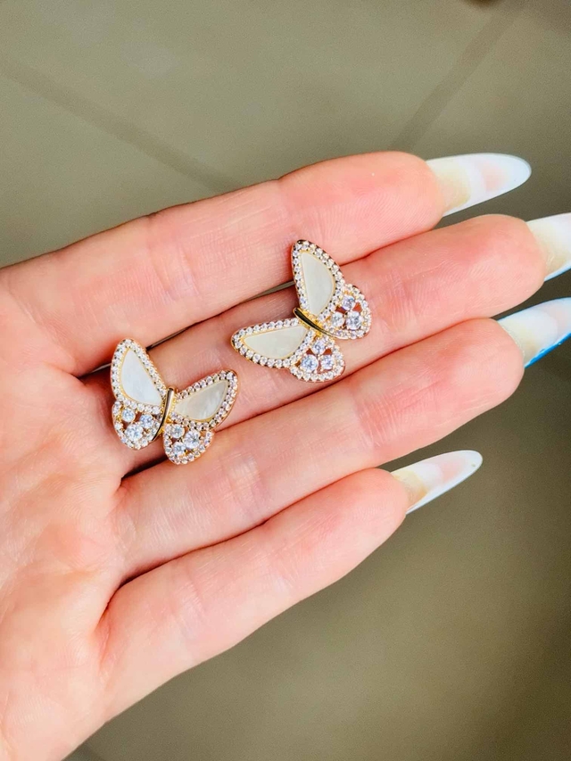 Brinco Borboleta Madrepérola e Microzircônias Folheado a Ouro18k