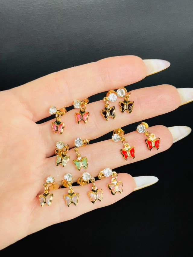 Brinco Borboletinha Cristal Folheado a Ouro 18k