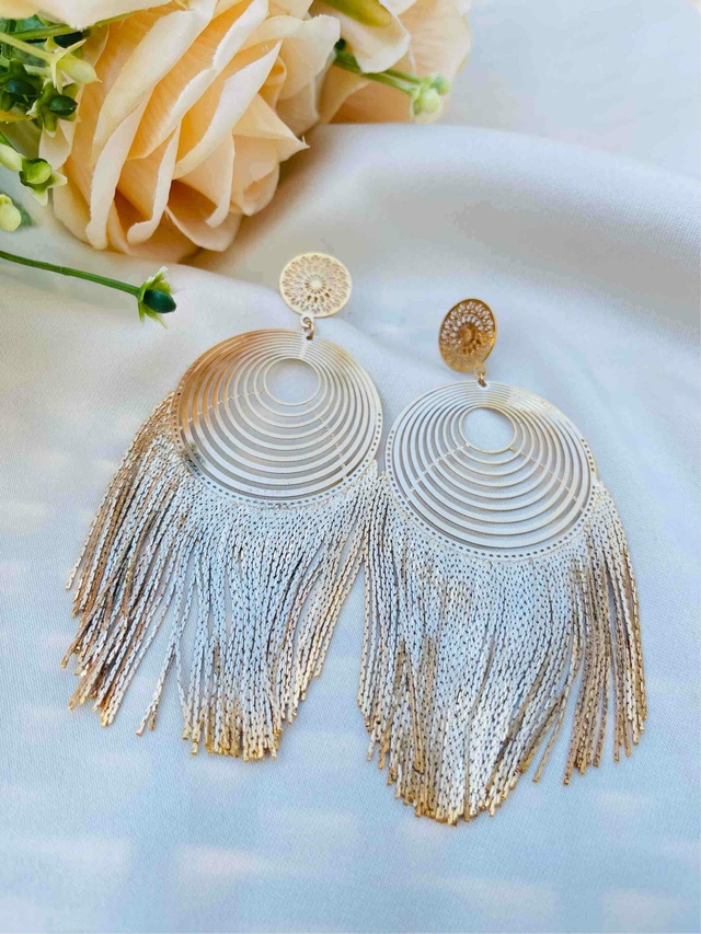 Brinco Franja Luxo Arcos Folheado a Ouro 18K