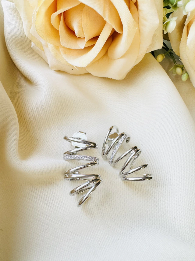 Brinco Labirinto com Zircônia Cravejada Prateada