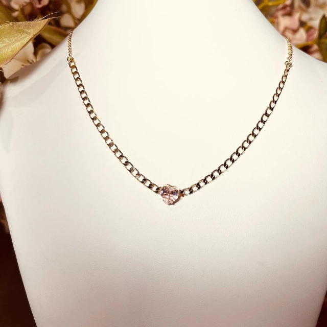 Choker Trabalhada com Pingente de Zircônia Rosa Folheado a Ouro 18K