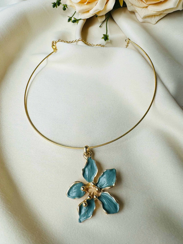 Colar Aro Flor de Liz CInza