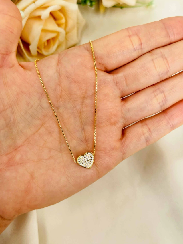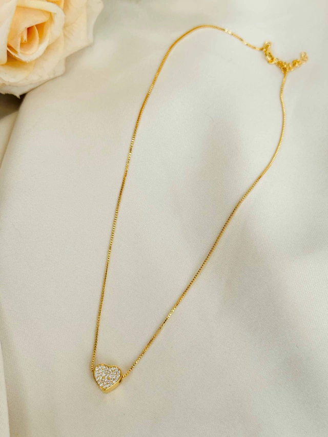 Colar Coraçãozinho Cravejado Folheado a Ouro 18K com 2 milésimos