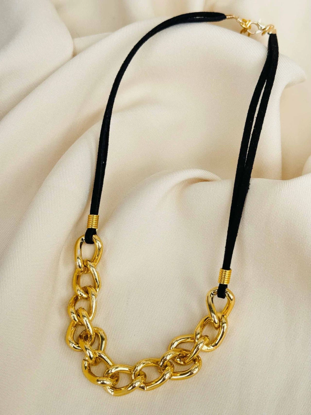 Colar de Couro com Correntaria BOHO CHIC