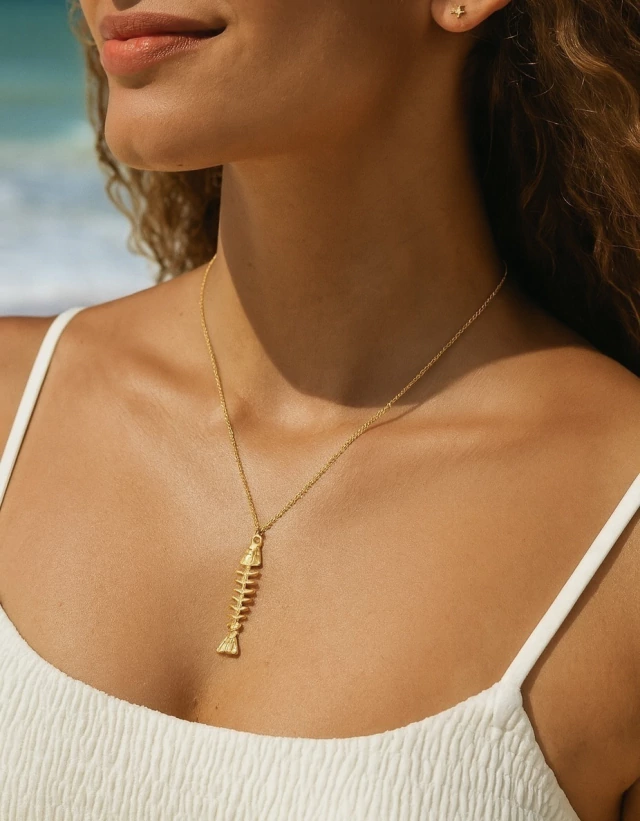 Colar Espinha de Peixe Folheado a Ouro 18k com 2 Milésimos
