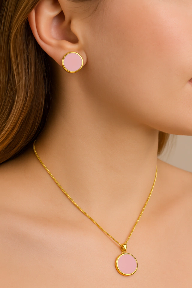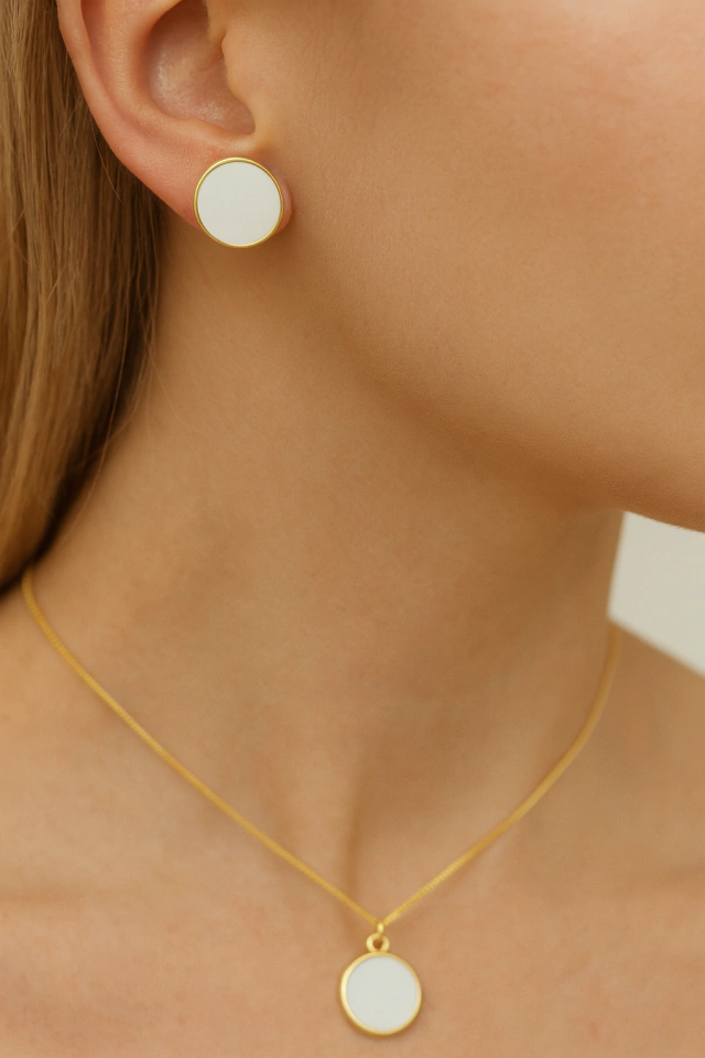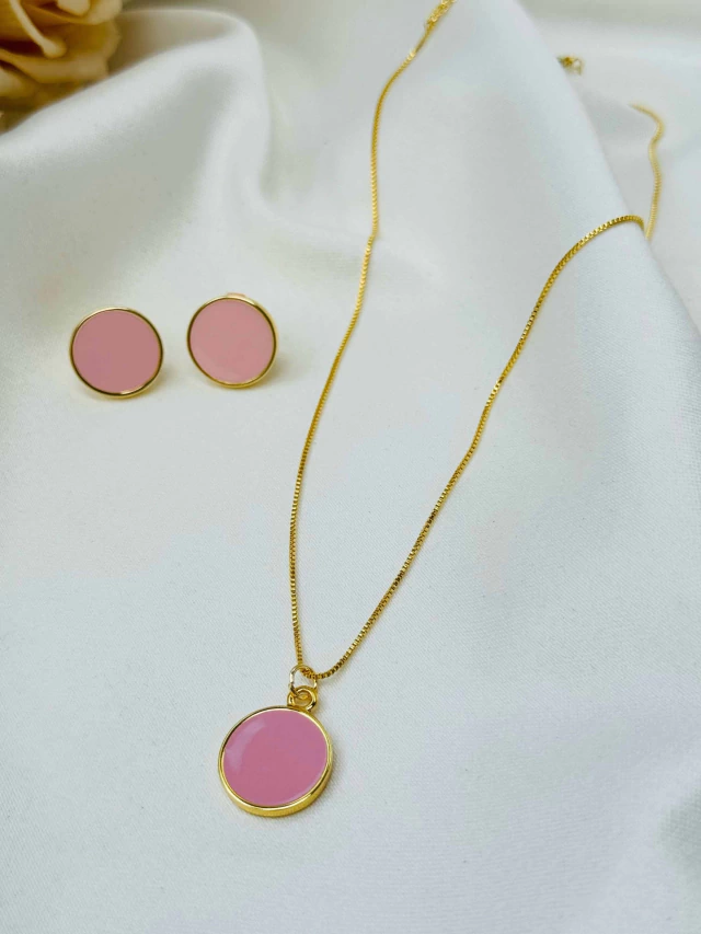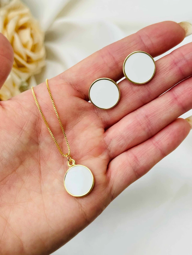 Kit Colar e Brinco Círculo Resinado Folheado a Ouro 18K com 2 Milésimos