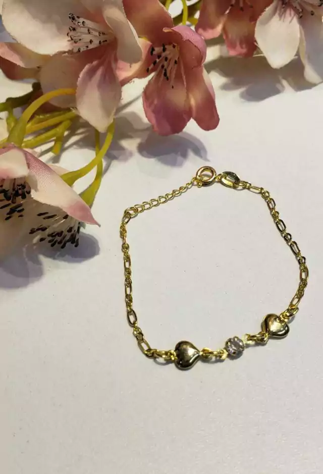Pulseira Coraçãozinhos Duplos Folheado a Ouro 18K