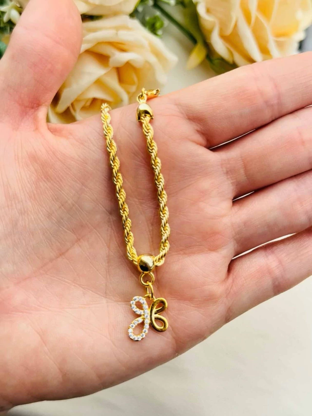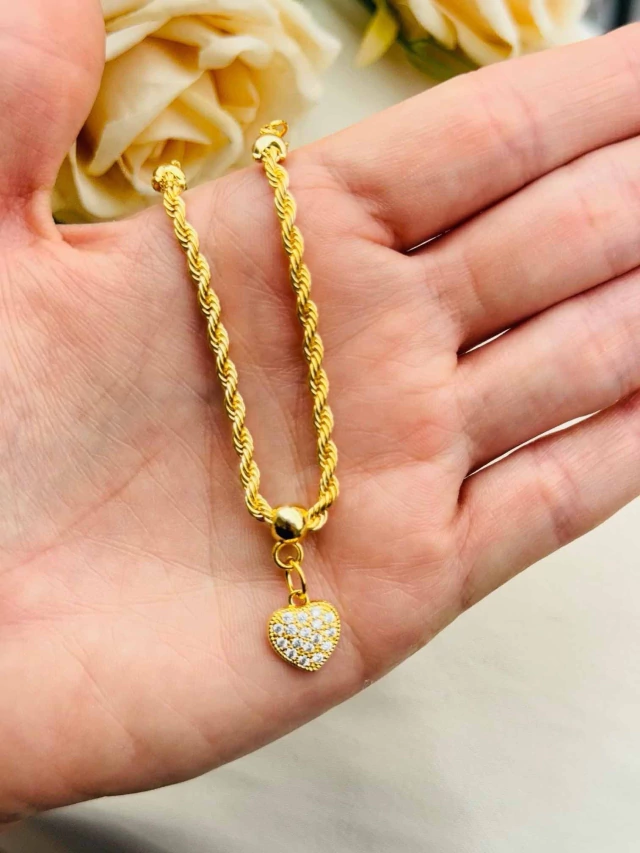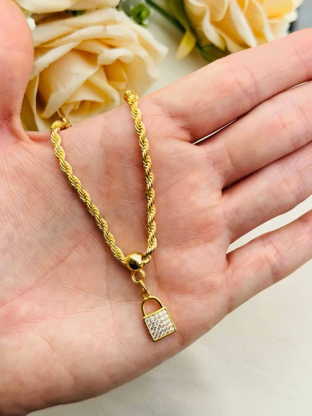 Pulseira Cordão Baiano Pingentes Cravejados Folheada a Ouro 18k com 2 Milésimos + Tripla Camada de Verniz