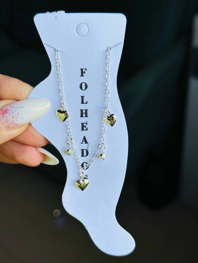 Tornozeleira Coraçõezinhos Folheada a Prata 925 com 30 Milésimos
