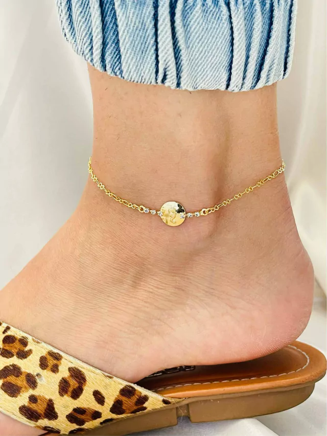 Tornozeleira Medalhinha Cavalo Marinho e Strass Folheado a Ouro 18K